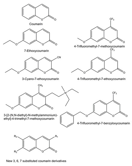 41. Juvonen, R.O.; Ahinko, M.; Huuskonen, J.; Raunio, H.; Pentikäinen, O.T. Development of new coumarin-based profluorescent substrates for human cytochrome P450 enzymes. Xenobiotica 2019, 49, 1015–1024. [Google Scholar] [CrossRef]