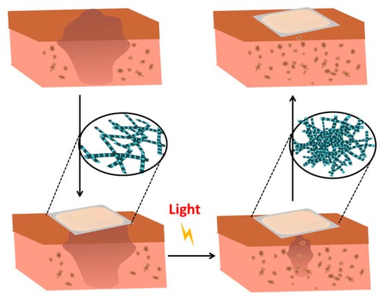 Light is an excellent trigger as its intensity and wavelength can be remotely and accurately controlled, quickly switched, and easily focused into specific areas with a resolution of 1 μm. Different wavelengths from UV to NIR have been employed as stimuli. UV light is widely employed in stimuli responsive materials but could be harmful and cannot penetrate deeply into tissues. In contrast, NIR appears to be more suitable for biomedical applications, especially, because NIR is less energetic, causes less damage to biological tissues and can penetrate deeper in the tissues. An interesting review highlights recent biomedical applications of NIR sensitive materials [].