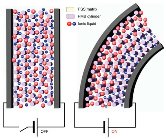 - Kim, O.; Shin, T.J.; Park, M.J. Fast low-voltage electroactive actuators using nanostructured polymer electrolytes. Nat. Commun. 2013, 4, 2208. [Google Scholar] [CrossRef]