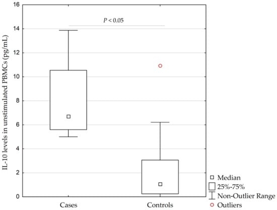 | PBMCs | IL-10 Levels (pg/mL) | p | ||
