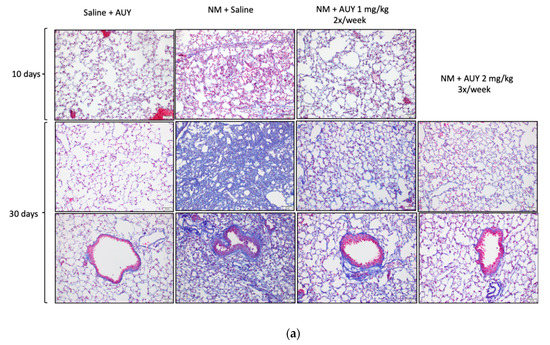 - NM + AUY 2 mg/kg 30 days group: mice were exposed to 0.625 mg/kg body weight NM (i.t.) and were treated with AUY-922 2 mg/kg (i.p.) 3 times/week for 30 days (n = 12 mice) All analyses were performed at 30 days post NM exposure.