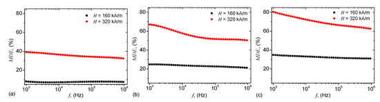 - Isaev, D.; Semisalova, A.; Alekhina, Y.; Makarova, L.; Perov, N. Simulation of Magnetodielectric Effect in Magnetorheological Elastomers. Int. J. Mol. Sci. 2019, 20, 1457. [Google Scholar] [CrossRef] [PubMed]