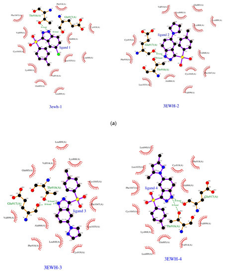 - Laskowski, R.A.; Swindells, M.B. LigPlot+: Multiple ligand-protein interaction diagrams for drug discovery. J. Chem. Inf. Model. 2011, 51, 2778–2786. [Google Scholar] [CrossRef] [PubMed]