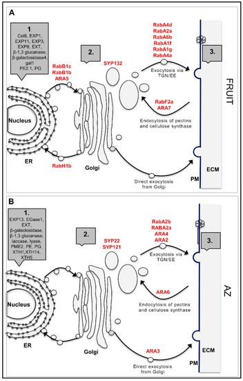- Lycett, G. The role of Rab GTPases in cell wall metabolism. J. Exp. Bot. 2008, 59, 4061–4074. [Google Scholar] [CrossRef]