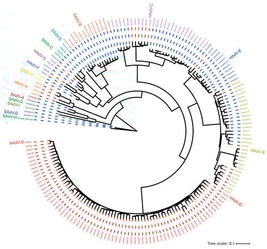 Supplementary materials can be found at https://www.mdpi.com/1422-0067/21/14/4821/s1. Figure S1. A high-resolution phylogenetic tree representing the genetic resemblance of human- and non-human primate-derived adenoviruses.