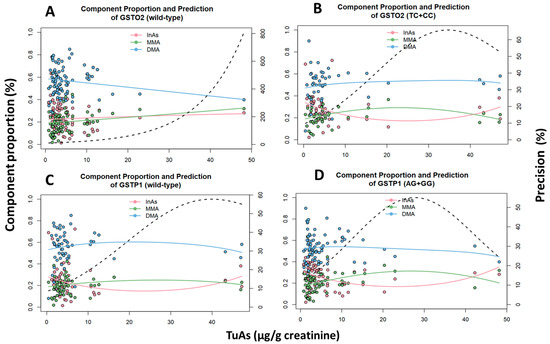 2.6. Multivariate Analyses of Polymorphisms and Covariates on Urinary Arsenic Metabolites