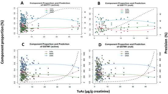 - Caceres, D.D.; Werlinger, F.; Orellana, M.; Jara, M.; Rocha, R.; Alvarado, S.; Quiñones, L. Polymorphism of Glutathione S-Transferase (GST) variants and its effect on distribution of urinary arsenic species in people exposed to low inorganic arsenic in tap water: An exploratory study. Arch. Environ. Occup. Health 2010, 65, 140–147. [Google Scholar] [CrossRef]