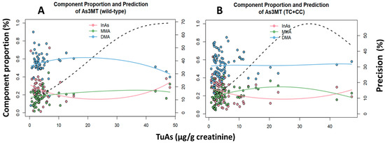 2.5. Univariate Analyses of Polymorphisms and Covariates on Urinary Arsenic Metabolites
