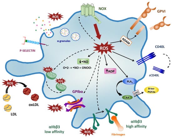 - Krötz, F.; Sohn, H.-Y.; Pohl, U. Reactive Oxygen Species: Players in the platelet game. Arter. Thromb. Vasc. Biol. 2004, 24, 1988–1996. [Google Scholar] [CrossRef]