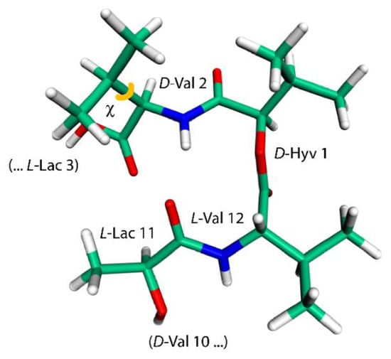 - Karle, I.L. Conformation of Valinomycin in a Triclinic Crystal Form. J. Am. Chem. Soc. 1975, 97, 4379–4386. [Google Scholar] [CrossRef] [PubMed]