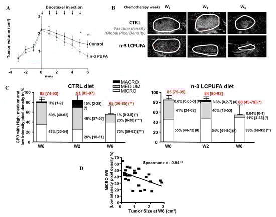 2.2. The Microvasculature Proportion Remains Preponderant in n-3 LCPUFA Tumors During Docetaxel Treatment and Correlates with Tumor Regression