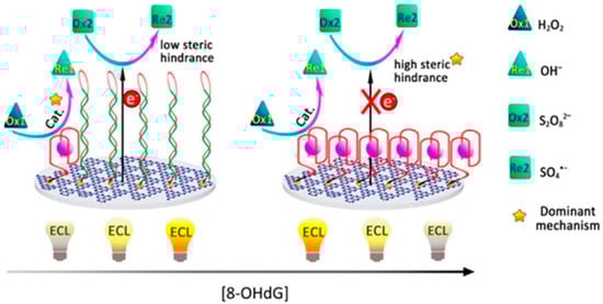- Lv, Y.; Chen, S.; Shen, Y.; Ji, J.; Zhou, Q.; Liu, S.; Zhang, Y. Competitive multiple-mechanism-driven electrochemiluminescent detection of 8-hydroxy-2’-deoxyguanosine. J. Am. Chem. Soc. 2018, 140, 2801–2804. [Google Scholar] [CrossRef] [PubMed]
