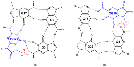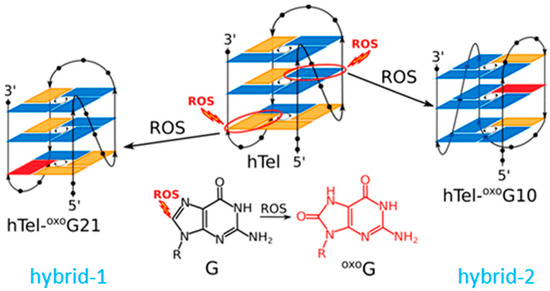 - Bielskute, S.; Plavec, J.; Podbevsek, P. Impact of oxidative lesions on the human telomeric G-quadruplex. J. Am. Chem. Soc. 2019, 141, 2594–2603. [Google Scholar] [CrossRef] [PubMed]