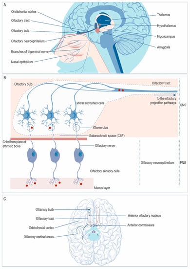 - Mori, I.; Goshima, F.; Ito, H.; Koide, N.; Yoshida, T.; Yokochi, T.; Kimura, Y.; Nishiyama, Y. The vomeronasal chemosensory system as a route of neuroinvasion by herpes simplex virus. Virolpgy 2005, 334, 51–58. [Google Scholar] [CrossRef] [PubMed]