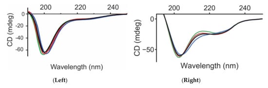 - Mavridis, L.; Janes, R.W. PDB2CD: A web-based application for the generation of circular dichroism spectra from protein atomic coordinates. Bioinformatics 2017, 33, 56–63. [Google Scholar] [CrossRef] [PubMed]