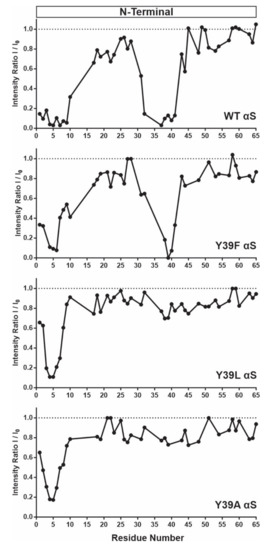 2.1. Monomeric αS Remains Disordered after Y39 Mutation
