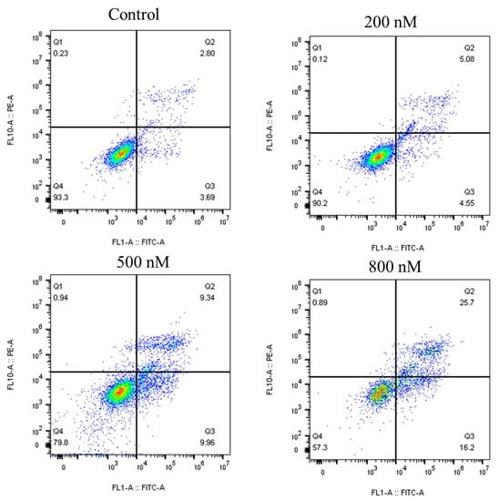 8q induced apoptosis in K562 cells (48 h) at different concentrations (0, 200, 500, 800 nM). DMSO as a negative control.