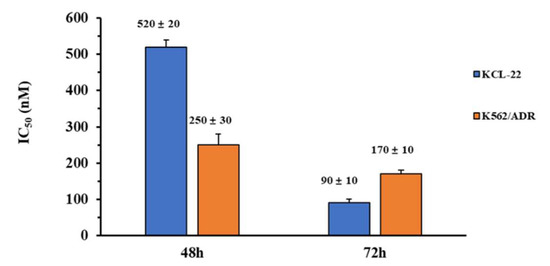 2.8. In Vitro Anti-Proliferation Activity of KCL-22 and K562/ADR Cells