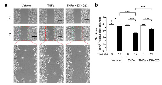 2.2. Effect of DK4023 on the TNFα-Induced Migration of MDA-MB-231 Cells