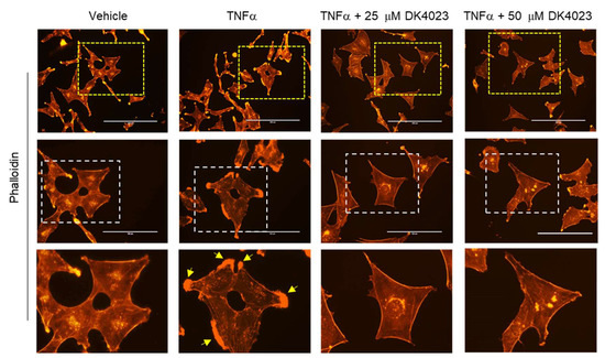 2.3. Effect of DK4023 on the Actin Reorganization of MDA-MB-231 Cells