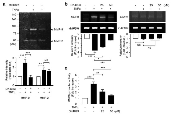 2.5. Effect of DK4023 on the TNFα-Induced Invasion of MD-MB-231 Cells