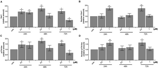 - Bertagnolo, V.; Nika, E.; Brugnoli, F.; Bonora, M.; Grassilli, S.; Pinton, P.; Capitani, S. Vav1 is a crucial molecule in monocytic/macrophagic differentiation of myeloid leukemia-derived cells. Cell Tissue Res. 2011, 345, 163–175. [Google Scholar] [CrossRef]