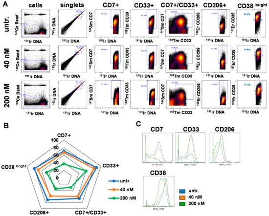 - Balog, J.A.; Hackler, L., Jr.; Kovacs, A.K.; Neuperger, P.; Alfoldi, R.; Nagy, L.I.; Puskas, L.G.; Szebeni, G.J. Single Cell Mass Cytometry Revealed the Immunomodulatory Effect of Cisplatin Via Downregulation of Splenic CD44+, IL-17A+ MDSCs and Promotion of Circulating IFN-gamma+ Myeloid Cells in the 4T1 Metastatic Breast Cancer Model. Int. J. Mol. Sci. 2019, 21, 170. [Google Scholar] [CrossRef]
