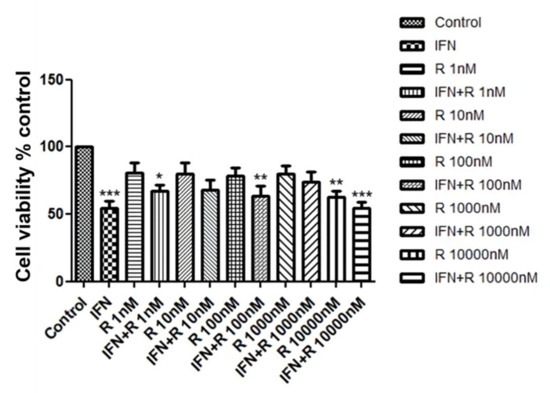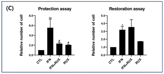 2.1. Effects of Ruxolitinib on the Cell Viability of hDPCs Treated with IFN-γ