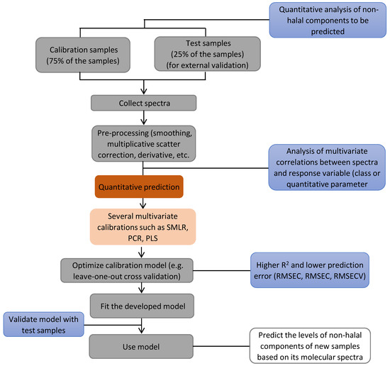Scheme of quantitative analysis of non-halal components in food and pharmaceutical products assisted by multivariate calibration [42].