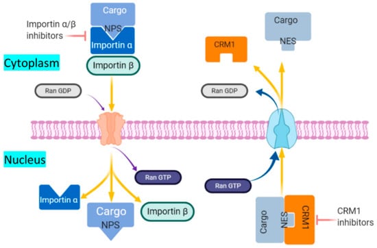 - Kosyna, F.K.; Depping, R. Controlling the gatekeeper: Therapeutic targeting of nuclear transport. Cells 2018, 7, 221. [Google Scholar] [CrossRef]