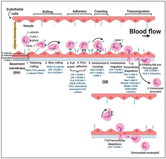 - Schnoor, M.; Alcaide, P.; Voisin, M.-B.; Van Buul, J.D. Crossing the Vascular Wall: Common and Unique Mechanisms Exploited by Different Leukocyte Subsets during Extravasation. Mediat. Inflamm. 2015, 1–23. [Google Scholar] [CrossRef]