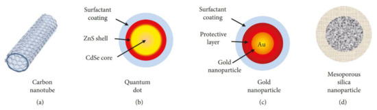 Example of the most employed inorganic nanocarriers: (a) carbon nanotubes, (b) quantum dots, (c) gold nanoparticles, and (d) mesoporous silica nanoparticles [253].