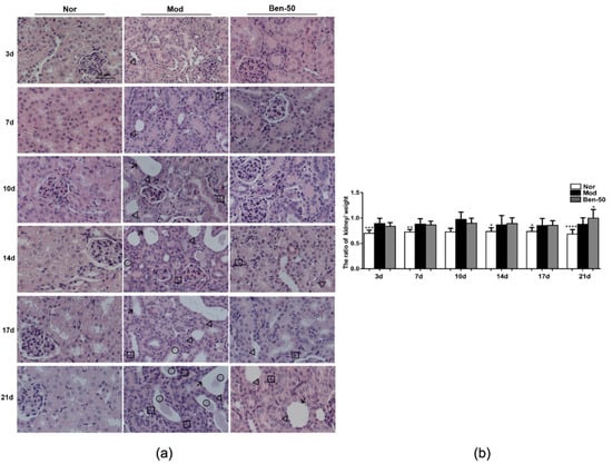 2.4. The Time-Feature on Renal Morphology of Hyperuricemia Mice Induced by PO and Adenine
