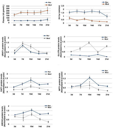 APA StyleWen, S., Wang, D., Yu, H., Liu, M., Chen, Q., Bao, R., Liu, L., Zhang, Y., & Wang, T. (2020). The Time-Feature of Uric Acid Excretion in Hyperuricemia Mice Induced by Potassium Oxonate and Adenine. International Journal of Molecular Sciences, 21(15), 5178. https://doi.org/10.3390/ijms21155178