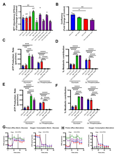 4.9. In Vitro Study of the Cellular Metabolism—Oxygen Consumption Rate (OCR), Proton Efflux Rate (PER) and ATP Rate Measurements