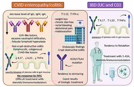 - Bosworth, B.P.; Sanders, A.; Maltz, C. Common variable immunodeficiency masquerading as Crohn’s ileocolitis. Inflamm. Bowel Dis. 2006, 12, 151–152. [Google Scholar] [CrossRef] [PubMed]