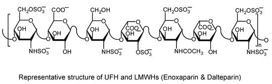 - Liu, J.; Li, J.; Arnold, K.; Pawlinski, R.; Key, N.S. Using heparin molecules to manage COVID-2019. Res. Pract. Thromb. Haemost. 2020, 4, 518–523. [Google Scholar] [CrossRef]