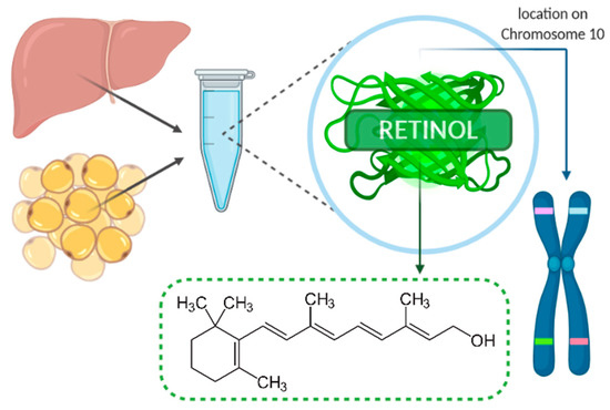 - Olsen, T.; Blomhoff, R. Retinol, Retinoic Acid, and Retinol-Binding Protein 4 are Differentially Associated with Cardiovascular Disease, Type 2 Diabetes, and Obesity: An Overview of Human Studies. Adv. Nutr. 2020, 11, 644–666. [Google Scholar] [CrossRef]