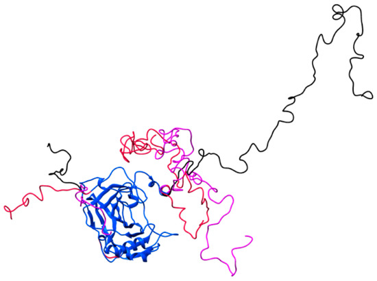 Studies by Langella et al. showed that the PG domain belongs to the family of intrinsically disordered proteins (IDPs), being inherently highly flexible and mainly unfolded. There are local tendencies in the N-terminal region (residues 38–87) that assume polyproline II-like (PPII) conformations and may be involved in binding partner recognition [31,34]. The PG domain is reported to play a role in several cellular processes including cell–cell adhesion and intercellular communications [35,36]. The C-terminal region (residues 88–136) of the PG domain adopts a slightly more compact conformation that may have a role in modulating CA catalytic activity [31].