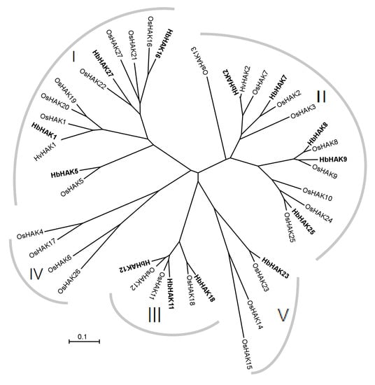 | HbHAK5 | 708 | 11 | plasma membrane |
