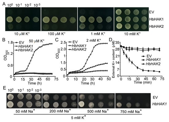 4.5. Complementation of HbHAK1 in Cy162 Yeast Strains