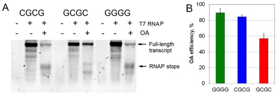 2.4. Inhibition of T7 Transcription by OA at Different G/C Sites