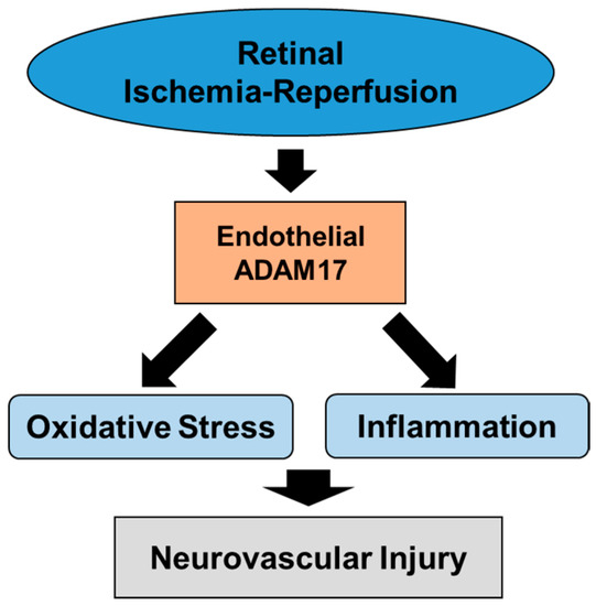 In conclusion, our results provide novel evidence that endothelial ADAM17 activity is an important contributor of IR-induced oxidative stress, inflammation, neurovascular cell death and injury (Figure 9). Finally, our data suggest that interventions directed at regulating ADAM17 activity can be beneficial for preventing and/or alleviating the consequences of ischemia in retinal tissue.