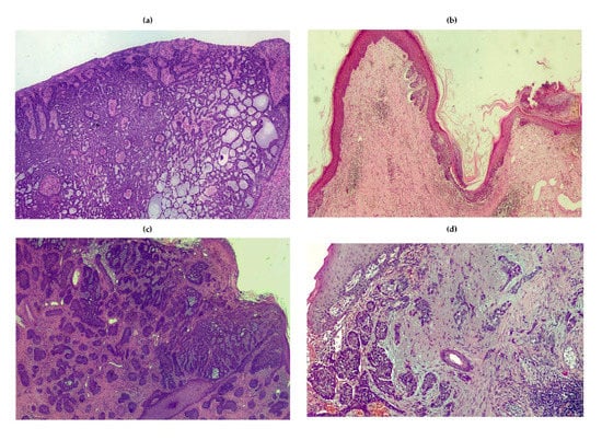 - Cho, R.J.; Alexandrov, L.B.; Breems, N.Y.; Atanasova, V.S.; Farshchian, M.; Purdom, E.; Nguyen, T.N.; Coarfa, C.; Rajapakshe, K.; Prisco, M.; et al. APOBEC mutation drives early-onset squamous cell carcinomas in recessive dystrophic epidermolysis bullosa. Sci. Transl. Med. 2018, 10, 1126. [Google Scholar] [CrossRef]