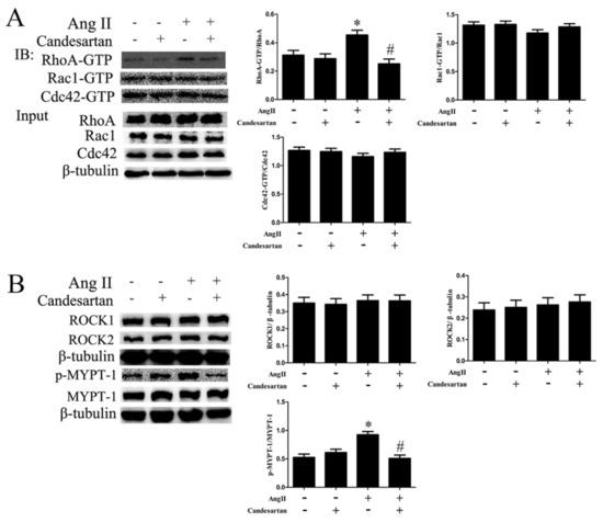 - Chiu, W.C.; Juang, J.M.; Chang, S.N.; Wu, C.K.; Tsai, C.T.; Tseng, Y.Z.; Chiang, F.T. Angiotensin II regulates the LARG/RhoA/MYPT1 axis in rat vascular smooth muscle in vitro. Acta. Pharmacol. Sin. 2012, 33, 1502–1510. [Google Scholar] [CrossRef] [PubMed]