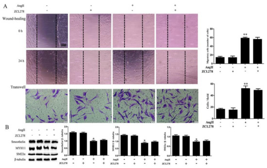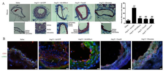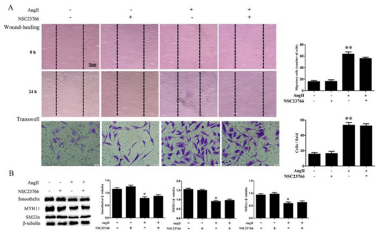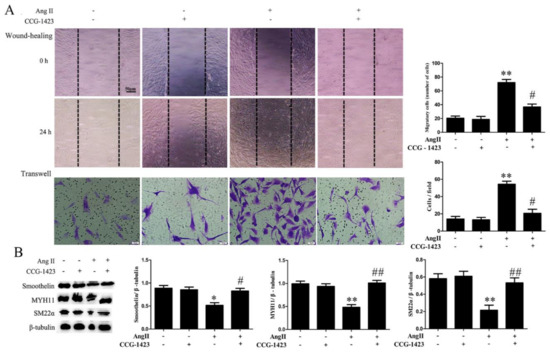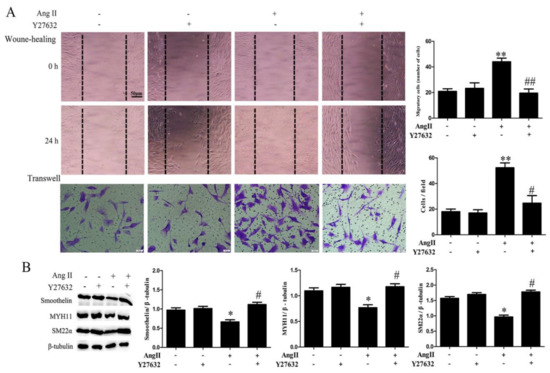 2.4. RhoA/ROCK Pathway Participates in Ang II-Mediated VSMC Migration and Dedifferentiation in Mice