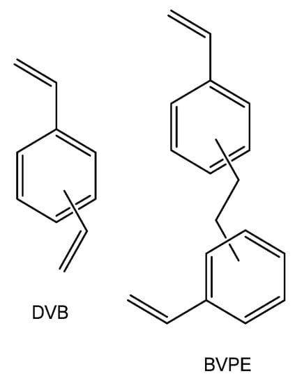Chemical structures of crosslinking agents: divinylbenzene and bis (vinylphenyl) ethane.