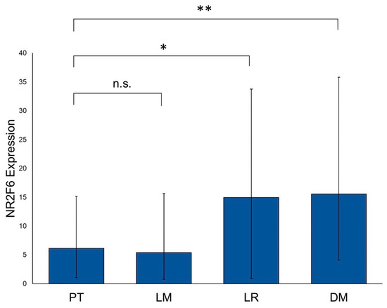 2.6. The NR2F6 Expression Is Independent of T and UICC Stages and the p16 Status of PTs