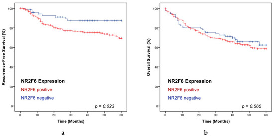 2.5. NR2F6-Expressing HNSCCs Are Associated with a Short Recurrence-Free Survival
