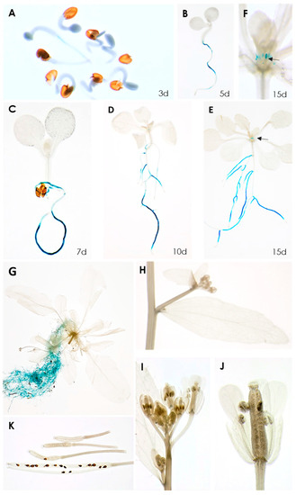 - Jefferson, R.A. The GUS reporter gene system. Nature 1989, 342, 837–838. [Google Scholar] [CrossRef]